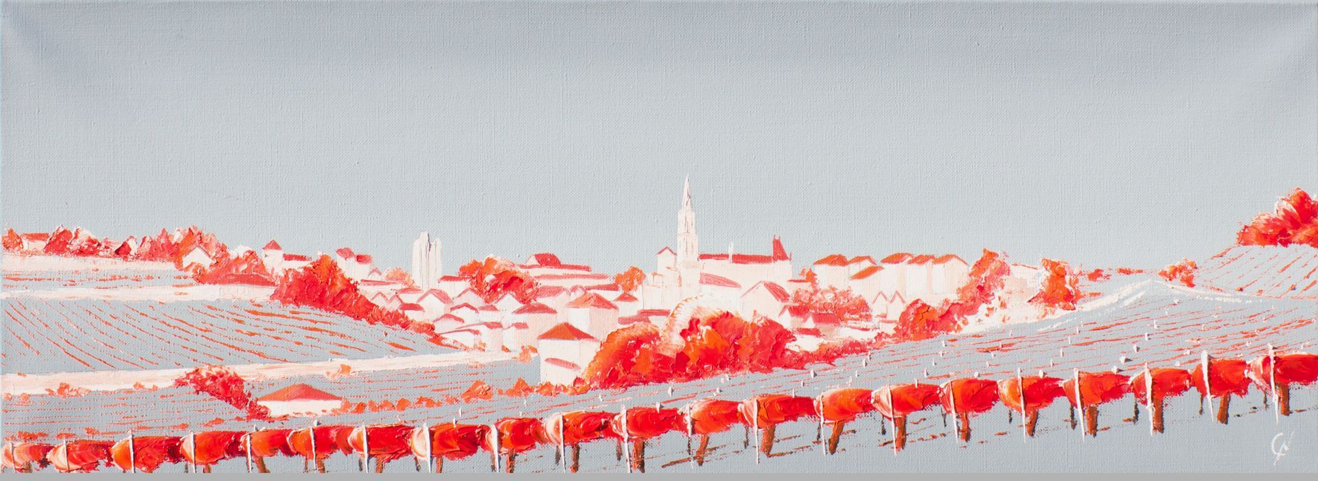Les villes, sculptées au couteau avec l’huile, s’animent en nuances de gris ou de rouge, célébrant leur architecture, leur histoire, leur inscription au patrimoine de l’UNESCO, et la vie qu’elles incarnent.